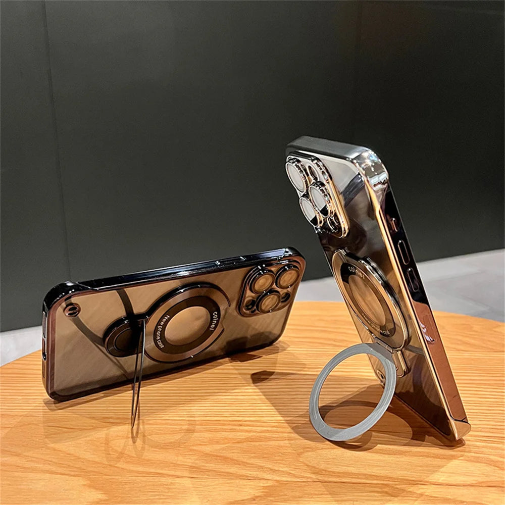 Coque de tรฉlรฉphone transparente sans cadre avec support magnรฉtique, รฉtui de luxe pour iPhone 15 Pro Max 14 Plus 13 12 11, avec anneau Magsafe